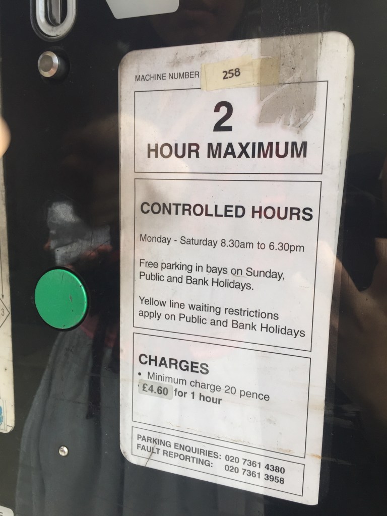如果你覺得澳門有些停車場10到20元一小時已經很貴的話,那對英國來說簡直是小巫見大巫,前陣子到 Harrods (倫敦著名百貨公司)逛逛,路邊的咪錶位你們猜猜要多少錢一小時?